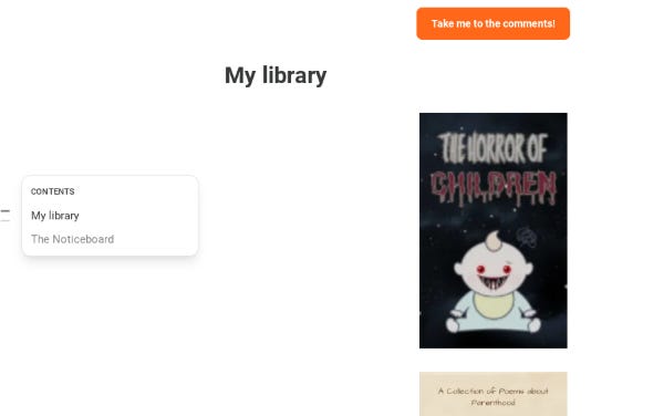 I’ve also discovered that on desktop (doesn’t work on my, afore-mentioned rubbish, Android phone) you get a contents tab on the left which lets you jump to each of the subheadings. I think this could be a brilliant feature if you have a lot of different info on there.